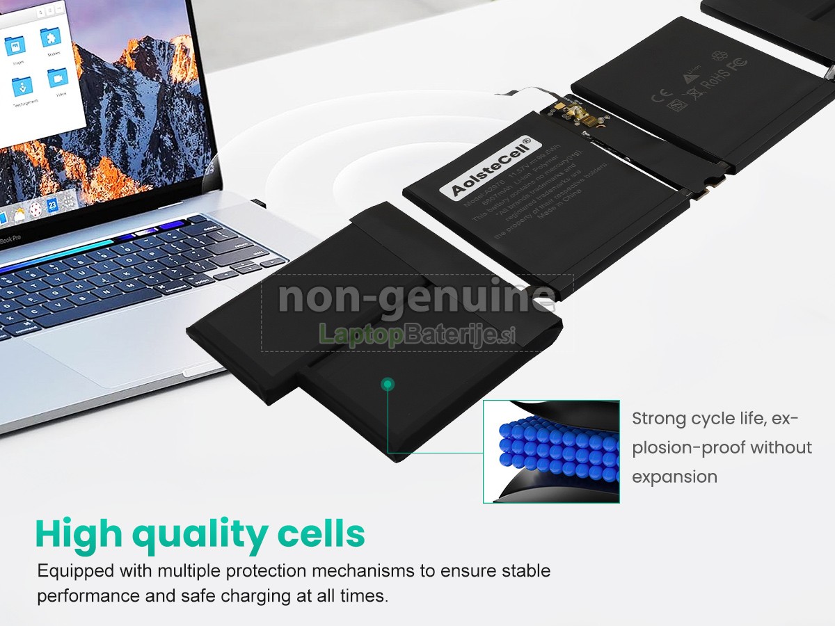Nova visokokakovostna baterija Apple MacBook Pro M3 Pro 12 CPU 18 GPU 16 A2991 EMC 8408 uporablja novo generacijo uvoženih celic visoke gostote, ki zagotavljajo stabilno in zanesljivo delovanje ter odlično življenjsko dobo baterije. Nova generacija uvoženih celic visoke gostote zagotavlja večje zaloge energije in s tem večjo zmogljivost. Naše baterije lahko izpolnijo vaše zahteve pri opravljanju zapletenih nalog, gledanju videov visoke ločljivosti ali izvajanju večopravilnih dejavnosti. Poleg tega je naše ohišje nadomestne baterija Apple MacBook Pro M3 Pro 12 CPU 18 GPU 16 A2991 EMC 8408 skrbno zasnovano in izdelano v razmerju 1:1 z obliko originalne baterije. Izdelano je iz visoko temperaturno odpornih in na obrabo odpornih ABS+PC zlitinskih materialov, ki so okolju prijazni in zagotavljajo vzdržljivost in kakovost ohišja baterije. Zato se lahko baterija popolnoma prilega vaši napravi z brezhibno povezavo in vam zagotavlja zanesljivo podporo pri napajanju.