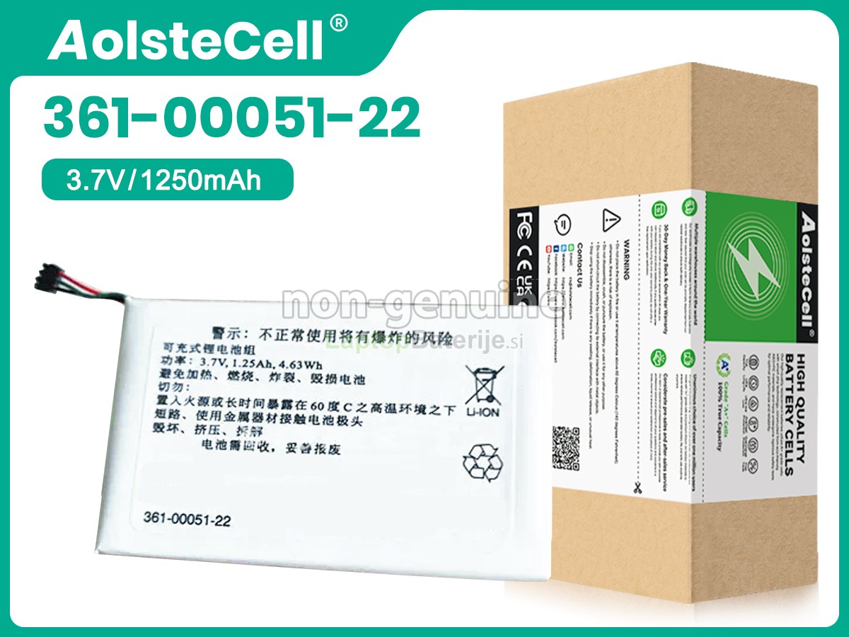 Laptopbaterije.si zagotavlja varnost vsake baterija Garmin 361-00051-22 že pri viru. Popolnoma se zavedamo pomembnosti vprašanj varnosti baterij, zato slovesno obljubljamo: nikoli ne bomo uporabili slabih surovin! Vsaka Garmin 361-00051-22 baterija je, preden zapusti tovarno, podvržena več sto strogim testom, ki zagotavljajo standarde visoke kakovosti. Pri nadzoru kakovosti baterij smo izjemno strogi. Nadomestne baterija Garmin 361-00051-22, ki pridejo v vaše roke, morajo prestati CE, UL, GS in druge mednarodne varnostne certifikate. Poleg tega bo naša tehnična ekipa pred pošiljanjem preverila napetost in zmogljivost baterije, da bi zagotovila pravilno delovanje.