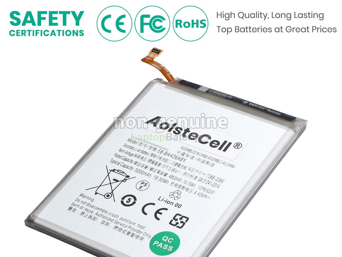 Laptopbaterije.si zagotavlja varnost vsake baterija Samsung GALAXY A42 5G že pri viru. Popolnoma se zavedamo pomembnosti vprašanj varnosti baterij, zato slovesno obljubljamo: nikoli ne bomo uporabili slabih surovin! Vsaka Samsung GALAXY A42 5G baterija je, preden zapusti tovarno, podvržena več sto strogim testom, ki zagotavljajo standarde visoke kakovosti. Pri nadzoru kakovosti baterij smo izjemno strogi. Nadomestne baterija Samsung GALAXY A42 5G, ki pridejo v vaše roke, morajo prestati CE, UL, GS in druge mednarodne varnostne certifikate. Poleg tega bo naša tehnična ekipa pred pošiljanjem preverila napetost in zmogljivost baterije, da bi zagotovila pravilno delovanje.
