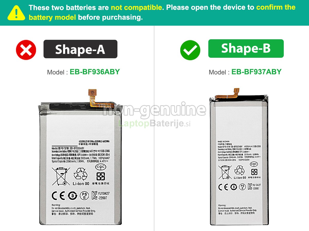 Zaščita razreda AKot vodilna trgovina z baterijami v Sloveniji imamo veliko zalogo in pestro izbiro. Ponujamo široko paleto baterijskih izdelkov do 500.000+ modelov, da zagotovimo, da lahko najdete baterijo, ki se popolnoma ujema z modelom vaše naprave. Laptopbaterije.si je najboljše mesto za nakup baterija Samsung GALAXY Z FOLD 4 SM-F936U1.