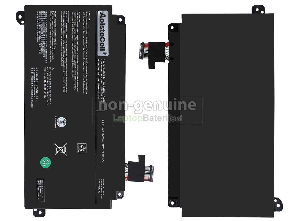 Nova visokokakovostna baterija Toshiba PA5344U-1BRS uporablja novo generacijo uvoženih celic visoke gostote, ki zagotavljajo stabilno in zanesljivo delovanje ter odlično življenjsko dobo baterije. Nova generacija uvoženih celic visoke gostote zagotavlja večje zaloge energije in s tem večjo zmogljivost. Naše baterije lahko izpolnijo vaše zahteve pri opravljanju zapletenih nalog, gledanju videov visoke ločljivosti ali izvajanju večopravilnih dejavnosti. Poleg tega je naše ohišje nadomestne baterija Toshiba PA5344U-1BRS skrbno zasnovano in izdelano v razmerju 1:1 z obliko originalne baterije. Izdelano je iz visoko temperaturno odpornih in na obrabo odpornih ABS+PC zlitinskih materialov, ki so okolju prijazni in zagotavljajo vzdržljivost in kakovost ohišja baterije. Zato se lahko baterija popolnoma prilega vaši napravi z brezhibno povezavo in vam zagotavlja zanesljivo podporo pri napajanju.